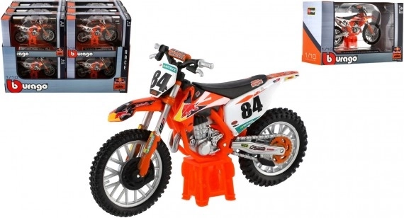A motorkerékpár-rajongóknak és gyűjtőknek a Bburago részletes motor modellt kínál, a KTM 450 SX-F Factory Edition 2018 modell 1:18 méretarányban. Ez a modell ideális játékhoz és gyűjteménybe való bemutatáshoz is.