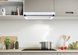 Teleszkópos páraelszívó stílusos fehér designnal tökéletesen illik minden modern konyhába.