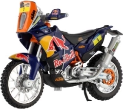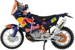 A modell hű színekkel és a Dakar Rally Red Bull KTM csapatának stílusával rendelkezik.