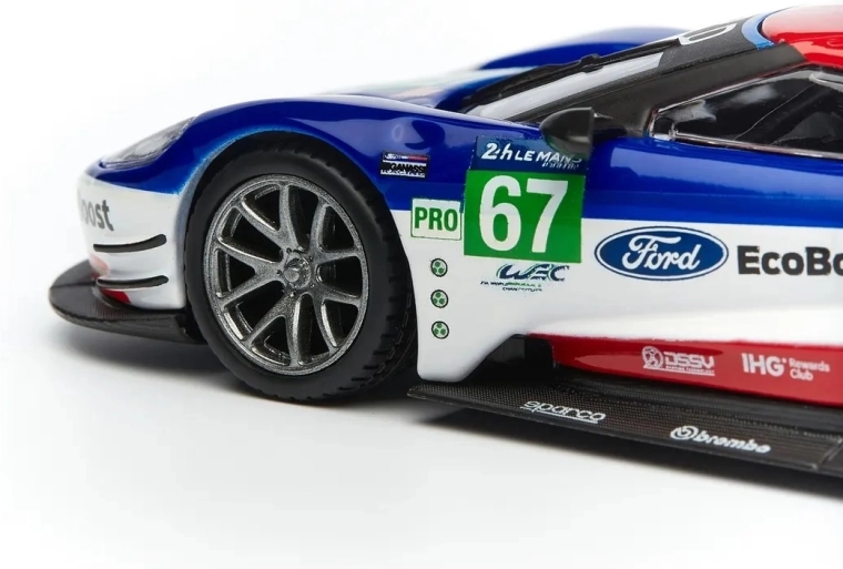 Eredeti FORD, EcoBoost feliratok és a 67-es rajtszám adják meg a modell versenykarakterét, amely vitrinben és fotókon is remekül mutat.