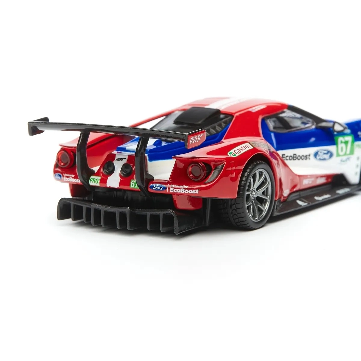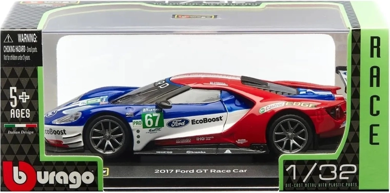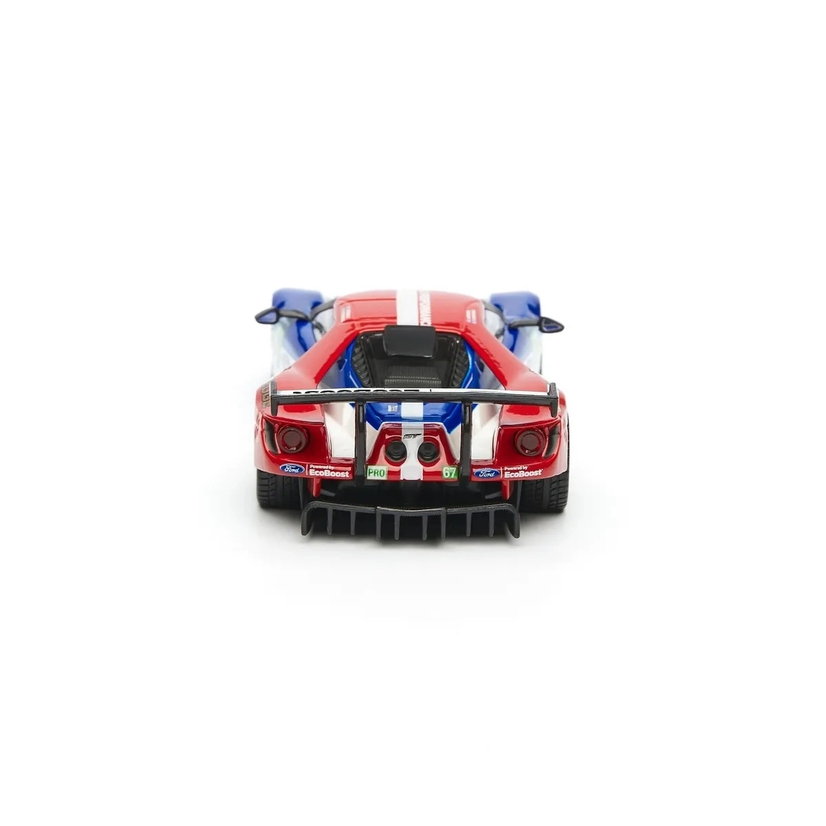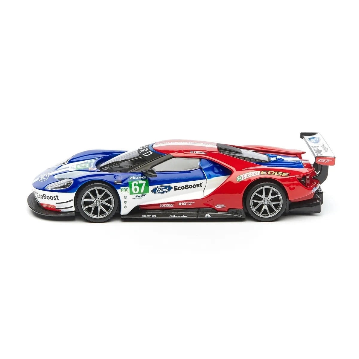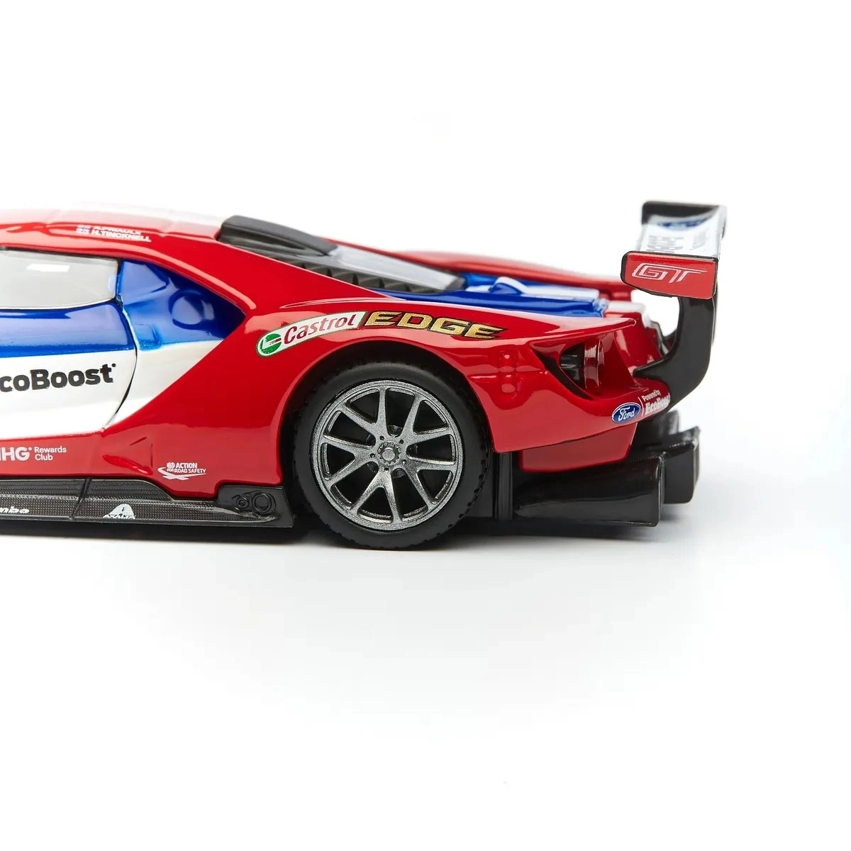 Ez a precíz, fém versenyautó-modell, a FORD GT ikonikus EcoBoost Le Mans #67 festésében remek karosszéria-részleteket, élethű arányokat és minőségi, szponzorlogókkal ellátott nyomtatást kínál. Masszív kivitelének és szabadon forgó kerekeinek köszönhetően ideális kiállításhoz és könnyed játékhoz is.