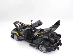 A fém szerkezet révén a modellautó robusztus és tartós, így hosszú távú kiállításra is alkalmas a polcaidon, vagy nagyszerű ajándék az autórajongók számára. Készülj fel arra, hogy ez a modell a figyelem középpontjába kerül fekete festésének és jellegzetes sárga elemeinek köszönhetően, amelyek tökéletesen utánozzák a valódi versenyautót.