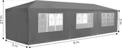 Kerti kereskedelmi sátor 3x9 m, 8 oldalfal, szürke