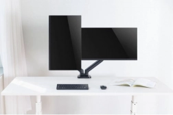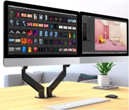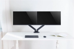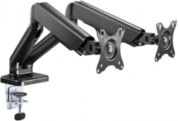 Hasznos kettős monitortartó 17 és 32 hüvelyk közötti monitorokhoz, akár 9 kg teherbírással, rugalmas és kényelmes munkaterület elrendezést kínál. Gázrugó lehetővé teszi az egyérintéses zökkenőmentes monitorpozíció állítást, ami hozzájárul az optimális ergonómiához és kényelmes munkavégzéshez. Az asztallapra rögzítés csipesszel biztosítja a stabilitást és biztonságot.