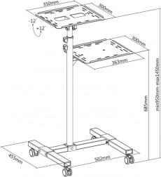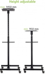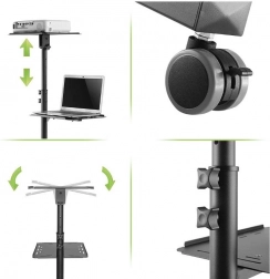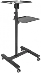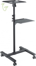 Ez a mobil fém projektor asztal ideális tréningekhez, prezentációkhoz vagy konferenciákhoz. Két polcot kínál - a felső magasságban állítható és dönthető, míg az alsó tökéletes laptop vagy egyéb eszközök elhelyezésére. A kiváló minőségű acél kivitel porfestett bevonattal magas tartósságot és hosszú élettartamot biztosít.