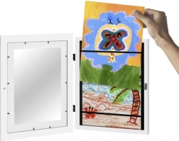Alakítson ki otthoni mini galériát! Ez a praktikus A4-es gyermekrajz keret akár 150 rajzot is befogad, nyitható előlappal és mágneses zárással könnyíti meg a cserét a falról való levétel nélkül, a munkákat pedig rugalmas pántok védik. A fúrás nélküli, egyszerű szerelésnek köszönhetően ideális gyerekszobába és nappaliba is.