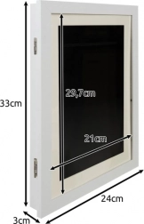A tartozékok között nyommentes akasztók is vannak a fúrás nélküli, egyszerű szereléshez, így nem sérül a fal. A biztonságos kivitel törhetetlen akril “üveg” és strapabíró MDF lap felhasználásával készült, ezért gyerekek közelében is megfelelő. A terméket emellett gondosan szállításbiztosan csomagoltuk, hogy hibátlan állapotban érkezzen.