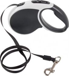A póráz tartós és kopásálló szíjjal van felszerelve, ideális intenzív használatra. Az automatikus feltekerő rendszer megakadályozza a póráz összegabalyodását.