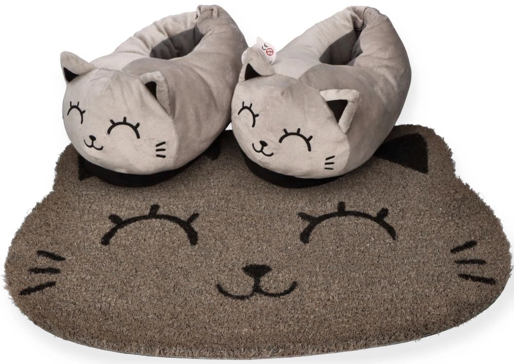 Aranyos, macska alakú bejárati lábtörlő, amely üdvözli a vendégeket és segít tisztán tartani az ajtó környékét. Tartós anyagból készült a szennyeződések hatékony lekaparásához, és kínál csúszásmentes kényelmet valamint könnyű karbantartást porszívózással. Ideális lakásokba, családi házakba, éttermekbe, hotelekbe és irodákba.