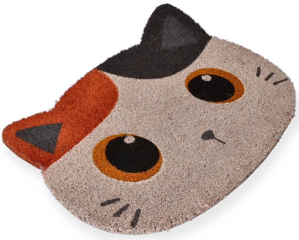 Ez az egyedi bejárati lábtörlő macskafej motívummal a praktikumot dekoratív megjelenéssel ötvözi. A durvább, textil jellegű felület hatékonyan letörli a szennyeződést és a port a talpakról, miközben az alacsony profil nem akadályozza az ajtónyitást.
