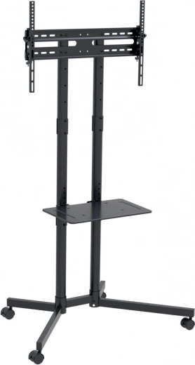 Az állvány kompatibilis LED, LCD és plazma televíziókkal, mint például Sony, LG, Samsung és más márkák. Rendelkezik állítható polccal kiegészítők, mint DVD lejátszó vagy játékkonzol telepítésére. Az állvány kerekekkel van ellátva a könnyű áthelyezhetőség érdekében. Ideális konferenciatermekbe, repterekre és nyilvános bemutatókhoz.