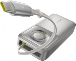 A nagy teljesítményű BASEUS Free2Pull powerbank akár 65 W-os gyors és megbízható töltést kínál, így megbirkózik a modern telefonokkal, tabletekkel és kisebb USB‑C-s laptopokkal is. A 20 000 mAh kapacitás többszöri feltöltést biztosít, a beépített LED kijelző pedig bármikor megmutatja a fennmaradó energia pontos százalékát.