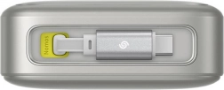 A praktikus kihúzható USB‑C kábel mindig kéznél van – extra tartozék hordozása nélkül. A második USB‑C porttal együtt egyszerre 2 eszköz is tölthető. A többszintű védelem (túlfeszültség, túláram, rövidzárlat, túltöltés és túlmelegedés) óvja az eszközeit és magát a powerbankot is.