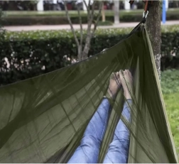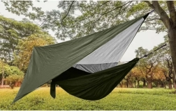 A függőágy ponyvás védelemmel van ellátva, amely védelmet nyújt az UV-sugárzás, az eső és a harmat ellen. A szúnyogháló hatékony védelmet nyújt a szúnyogok és más rovarok ellen, ugyanakkor jó légáramlást biztosít. Praktikus zsebe lehetővé teszi, hogy kéznél tartsa apróságait, mint például a telefonját vagy könyveit.