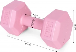 Edzzen hatékonyan otthon a rózsaszín ModernHome súlyzókkal. A készlet 2 darab, egyenként 2 kg-os súlyt tartalmaz, amelyek támogatják a teljes test átfogó erősítését – karok, hát, has, lábak és farizmok. A hatszögletű formának köszönhetően a súlyzók stabilak és biztonságosak, így nyugodtan leteheti őket köredzés közben és a szünetek alatt is.