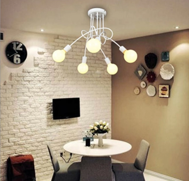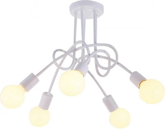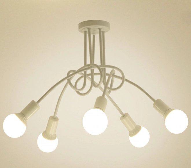 Elegáns mennyezeti csillár 5 fényforrással és E27 foglalattal, kiváló választás modern és loft stílusú enteriőrökbe. A fehér színű fémkonstrukció könnyedséget és stílust kölcsönöz a térnek, a kettős kapcsolóval való bekötés lehetősége pedig növeli a használati komfortot. Ideális a sötétebb sarkok felderítésére, valamint dekoratív elemként a nappaliba, étkezőbe vagy dolgozószobába.