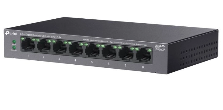 Modern és nagy teljesítményű kapcsoló 8 gigabites porttal, ideális kis- és középvállalkozások számára, ahol megbízható és hatékony hálózati megoldásra van szükség PoE táplálási lehetőséggel.