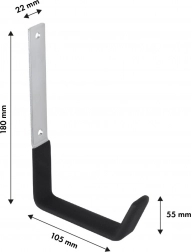 A szerelés gyors és egyszerű – a két szerelőfurattal ellátott lap szilárdan tart a falon, a kampó pedig elbírja a mindennapi terhelést. A praktikus 180 × 105 × 55 mm méret és az ergonomikusan formázott, gumírozott kampórész növeli a biztonságot és a használati kényelmet.