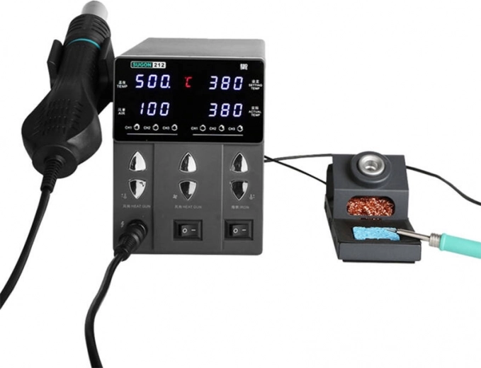 Sugon 212 a forrólevegős állomást és a T12 pákafejet kombinálja, így átfogó eszközt nyújt az elektronikai javításokhoz és szereléshez. Nemcsak precíz forrasztást tesz lehetővé, hanem az SMD alkatrészek könnyű kiforrasztását és szerelését is. Három programozható gomb segítségével optimalizálhatja a hőmérséklet- és légáram beállításait.