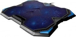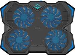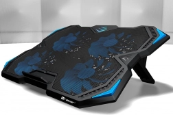 Nagy teljesítményű és csendes ventilátorok: Az állvány négy csendes 140 mm-es ventilátorral van felszerelve, amelyek akár 1000 fordulatot is elérhetnek percenként, ezáltal biztosítva a készülék hatékony hűtését. A kék LED háttérvilágítás futurisztikus megjelenést kölcsönöz az állványnak.