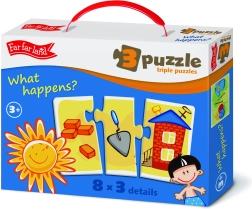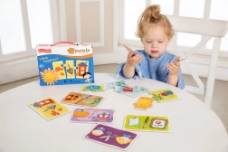 Fedezd fel az okos Far Far Land szettet, amely játékosan tanítja a gyerekeket az összepárosításra és a tárgyak közti összefüggések felismerésére. Minden kép három darabra van osztva, a feladat pedig a helyes, egymáshoz tartozó hármas megtalálása. A kirakás fejleszti a koncentrációt, a türelmet, és örömet ad minden sikeresen kirakott motívumnál.