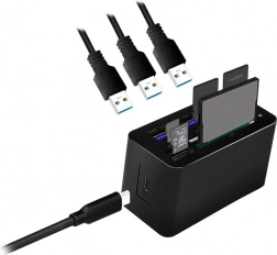 Ez az univerzális USB‑C típusú dokkolóállomás a laptop egyetlen portját nagy teljesítményű elosztóvá alakítja. Három gyors USB 3.0 portot kap a perifériákhoz, egy átmenő táplálást biztosító USB‑C portot és beépített memóriakártya-olvasókat, köztük SD, microSD, M2, MS és CF formátumokat. Kompakt méreteinek köszönhetően ideális utazáshoz.