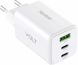 A VOLT 65 W töltő modern GaN technológiát használ, ennek köszönhetően kisebb, hűvösebb és hatékonyabb a hagyományos adaptereknél. A három port lehetővé teszi több eszköz kényelmes, egyidejű töltését, miközben az USB‑C nagy teljesítményt biztosít a laptopokhoz, az USB‑A pedig gyorsan kiszolgálja a kiegészítőket.