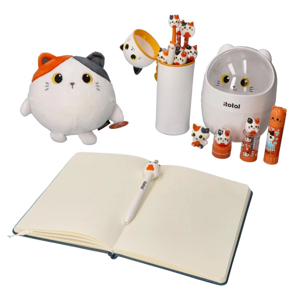 A fehér macskafej sárga szemekkel játékos hangulatot ad a munkaterületnek, és rendezettségre ösztönöz stíluskompromisszumok nélkül.