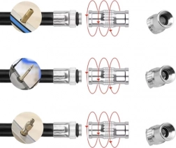 - Biztonságos felfújás: a rugalmas tömlő kíméli a szelepet.