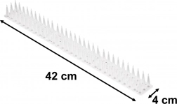 Szabaduljon meg a nem kívánt látogatóktól párkányokon, pártázatokon és korlátokon a műanyag madárriasztó tüskékkel. A könnyű, mégis tartós műanyag kivitel hatékony és humánus védelmet nyújt galambok és más madarak ellen anélkül, hogy rontaná az épület megjelenését. Könnyű telepítés ragasztóval vagy kábelkötegelőkkel, valamint moduláris rendszer a felület hosszához való pontos igazításhoz.