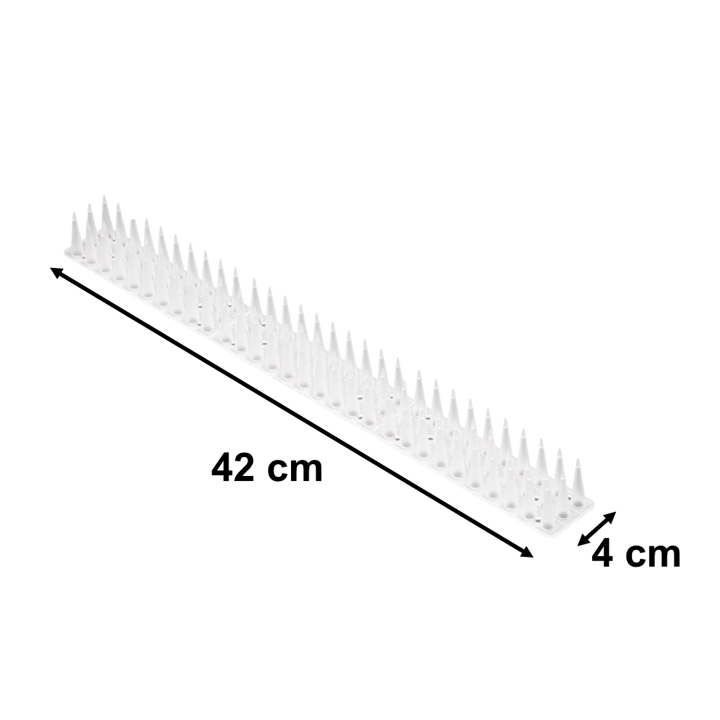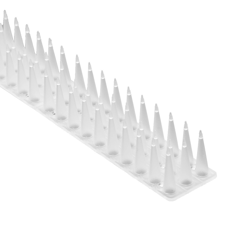 A fehér műanyag tüskék esztétikusak, és ellenállnak az esőnek, napnak és fagynak, így hosszan tartó védelmet biztosítanak.