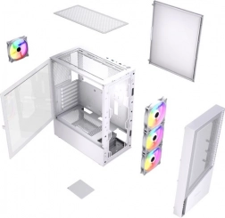 A Fornax 4300 egy fehér, midi toronyház játékosoknak és igényes felhasználóknak, akik kiváló légáramlást, látványos ARGB világítást és kényelmes szerelhetőséget keresnek. Az elülső és felső mesh panelek intenzív légáramlást támogatnak, míg a négy előre telepített ARGB ventilátor optimális hőmérsékleten tartja az alkatrészeket akár hosszú játékmenetek során is.