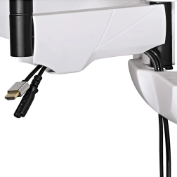 Az integrált kábelkezelő rendszer segít rendben tartani a kábeleket és szem elől távol tartani azokat, ami hozzájárul a helyiség esztétikai megjelenéséhez. A telepítés egyszerű az Fischer tiplivel, vízmértékkel, fúrási sablonnal és ceruzával ellátott szerelési készletnek köszönhetően.