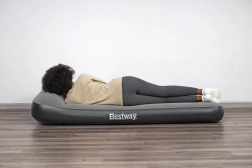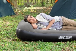 Élvezze a nyugodt alvást bárhol is legyen. A BESTWAY Tritech felfújható ágy a masszív I‑Beam belső szerkezetet tartós Tritech anyaggal kombinálja, amely hosszan tartó használat mellett is megőrzi alakját. A kellemes velúr felület megakadályozza az ágynemű csúszását, és egész éjjel kényelmet biztosít.