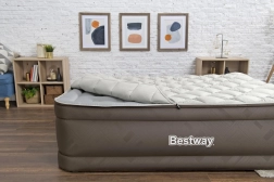 Élvezze a kényelmes alvást bárhol. A BESTWAY Queen méretű felfújható ágy stabil alátámasztást, kellemes felületet és 51 cm-es, megemelt magasságot biztosít a kényelmes felkeléshez. A beépített elektromos pumpa gyors és gondtalan előkészítést, valamint leeresztést tesz lehetővé.