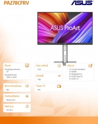 Az ASUS ProArt Display PA278CFRV professzionális tartalommal végzett munkákra lett tervezve. 95% DCI-P3 és 100% sRGB lefedettséggel biztosítja a hű színvisszaadást, ideális fotósok és videós szerkesztők számára. Minden monitor gyárilag van kalibrálva Delta E < 2 pontossággal és Calman Verified tanúsítvánnyal rendelkezik.