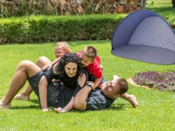 A praktikus strandsátor önfelálló mechanizmussal néhány másodperc alatt felállítható, így azonnal kellemes árnyékot és szélfogást biztosít. Az UV-védelmet nyújtó szövet segít csökkenteni a káros napsugárzás hatását, ezért kiváló választás családoknak, uszodába és parkba is.