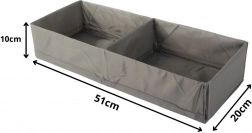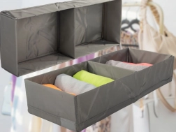 A praktikus fiókrendszerező segít hatékonyan kihasználni a helyet a szekrényben és a komódban. A két különálló szekció mindent a helyén tart – a fehérneműtől és zokniktól kezdve a sálakon át a kisebb kiegészítőkig. A semleges szürke szín elegánsan illeszkedik bármely enteriőrbe.