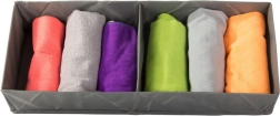A poliészter textil kivitel gyorsan tisztán tartható, összehajtva pedig helyet spórol a fiókban és a szekrényben is.