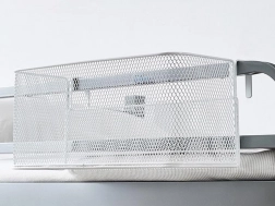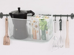 Az elegáns fehér függő kosár lakkozott fémből bővíti a tárolóhelyet mindenütt, ahol a legnagyobb szükség van rá. A finom háló biztosítja a légáramlást és a gyors száradást, így nedves helyiségekben, például fürdőszobában vagy konyhában is megfelel. A felszerelés pillanatok műve – a kosarat egyszerűen ráhúzza a polc, az ajtó vagy az ágykeret élére.