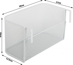 Praktikus függő kosár tartós fémhálóból, amely segít rendet tartani a konyhában, fürdőszobában, irodában és hálószobában. Az okos rögzítőknek köszönhetően könnyedén felakasztható sínre, polcra vagy ajtóra fúrás nélkül. A könnyű, erős és szellős kosár kiváló áttekinthetőséget biztosít a tárolt dolgoknak, gyors telepítést és sokoldalú felhasználást bármely enteriőrben.