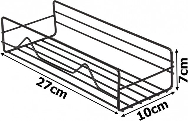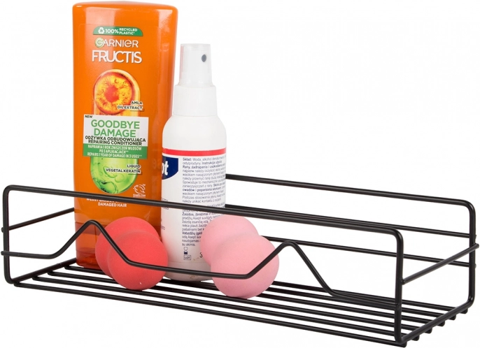 Ez a fekete, elegáns függesztett fémpolc hatékonyan használja ki a fali szabad teret, és mindig kéznél tartja a szükséges dolgokat. A nyitott drótkosaras kialakítás gyors vízelvezetést és légáramlást biztosít, így tökéletes a zuhanyzóba és a mosdó fölé is.