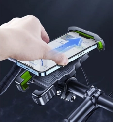 A tartó 360°-os forgatási funkcióval rendelkezik, és rezgésgátló betétekkel van felszerelve, amelyek minimalizálják a rázkódást, így a telefon képernyője mindig tisztán látható és stabil, még térköves vagy hegyi terepen is.
