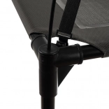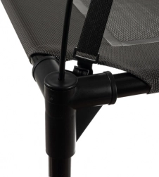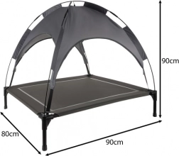 Az ágy 18 cm magasan van a földtől, és a légáteresztő háló biztosít kiváló levegőventilációt és kényelmet a kutyának.