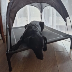Ez a termék *ideális nagytestű fajták* számára, mint a Border Collie, Beagle, vagy Golden Retriever. Emellett kedvencének biztonságérzetet nyújt a baldachin árnyékának köszönhetően, ami természetes menedékhez hasonló úvót nyújt.
