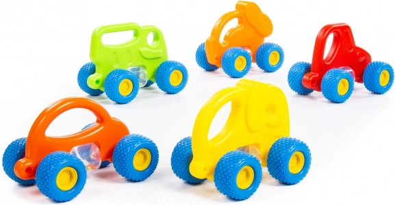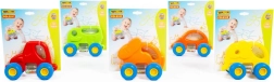 A bájos, nyusziformájú kisautó a legkisebbek biztonságos és fejlesztő játékához készült. A durva mintázatú gumikerekeknek köszönhetően a haladás csendes és egyenletes különböző felületeken. A színes golyókkal töltött henger mozgás közben kellemesen csörög, fejlesztve a hallási észlelést.