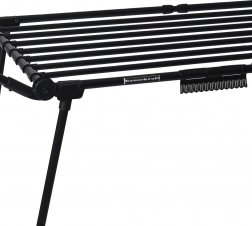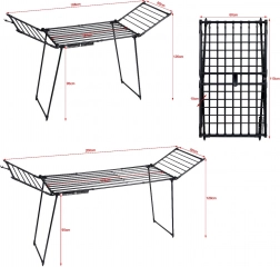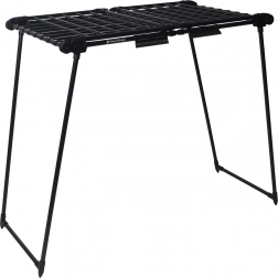Helytakarékos kialakítás, amely gyorsan összecsukható 60 × 10 × 110 cm kompakt méretre. A matt fekete felületkezelés korrózió- és kopásálló, így beltérre és erkélyre vagy teraszra is ideális.