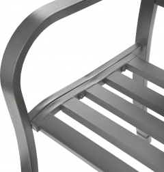 Ez a kültéri pad a tartósságot, a kényelmet és az időtálló megjelenést ötvözi. A fém váz védőbevonattal kezelt, amely véd a korrózióval, a nedvességgel és az UV-sugárzással szemben. Az ergonomikusan formázott háttámlának köszönhetően hosszabb ülés közben is kényelmes.