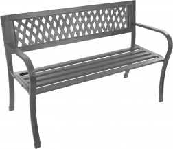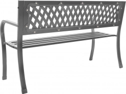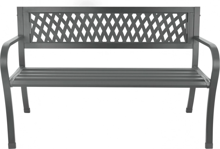 Elegáns, grafitszürke kerti pad, ideális a kertbe, teraszra és erkélyre. Masszív fém szerkezetet kínál acélból és öntöttvasból, időjárásállóságot, valamint ergonomikus háttámlát a kényelmes pihenéshez. A stabilitást csúszásgátló lábvégződések növelik, az időtálló nyitott (rácsos) dizájn pedig stílust visz a térbe.