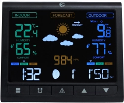 A meteorológiai állomás barométerrel van felszerelve, amely lehetővé teszi a légnyomás folyamatos megfigyelését és az időjárás változásainak előrejelzését. A páratartalom mérése beltéren és kültéren biztosítja a jobb komfortot a lakókörnyezetben. Az beépített időjárás előrejelzés segítségével könnyedén megtervezheti napját.